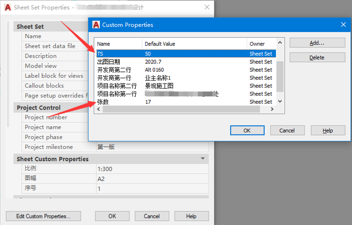 首先,我们需要在图纸集的特性中定义这两个特性这两个名称可以随自己喜好设置,一个是序号,一个是图纸总张数,并插入到图签的相应位置。