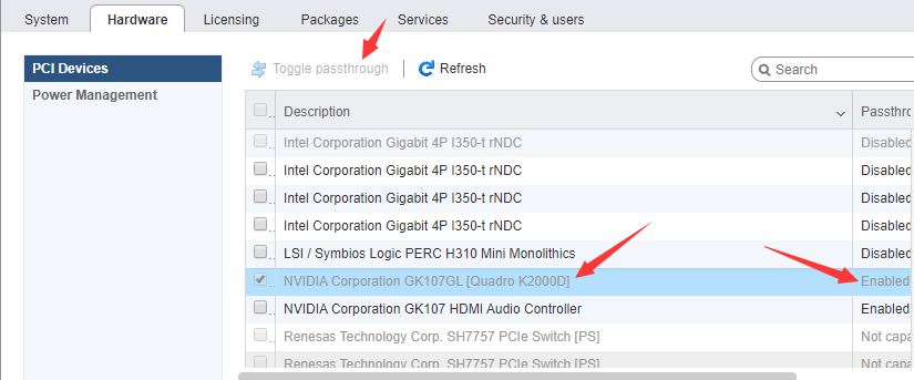 首先,ESXI管理页面中设置pci直通。